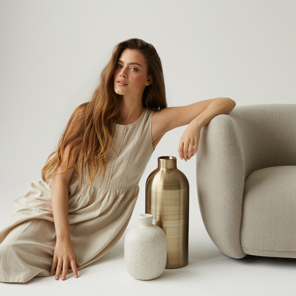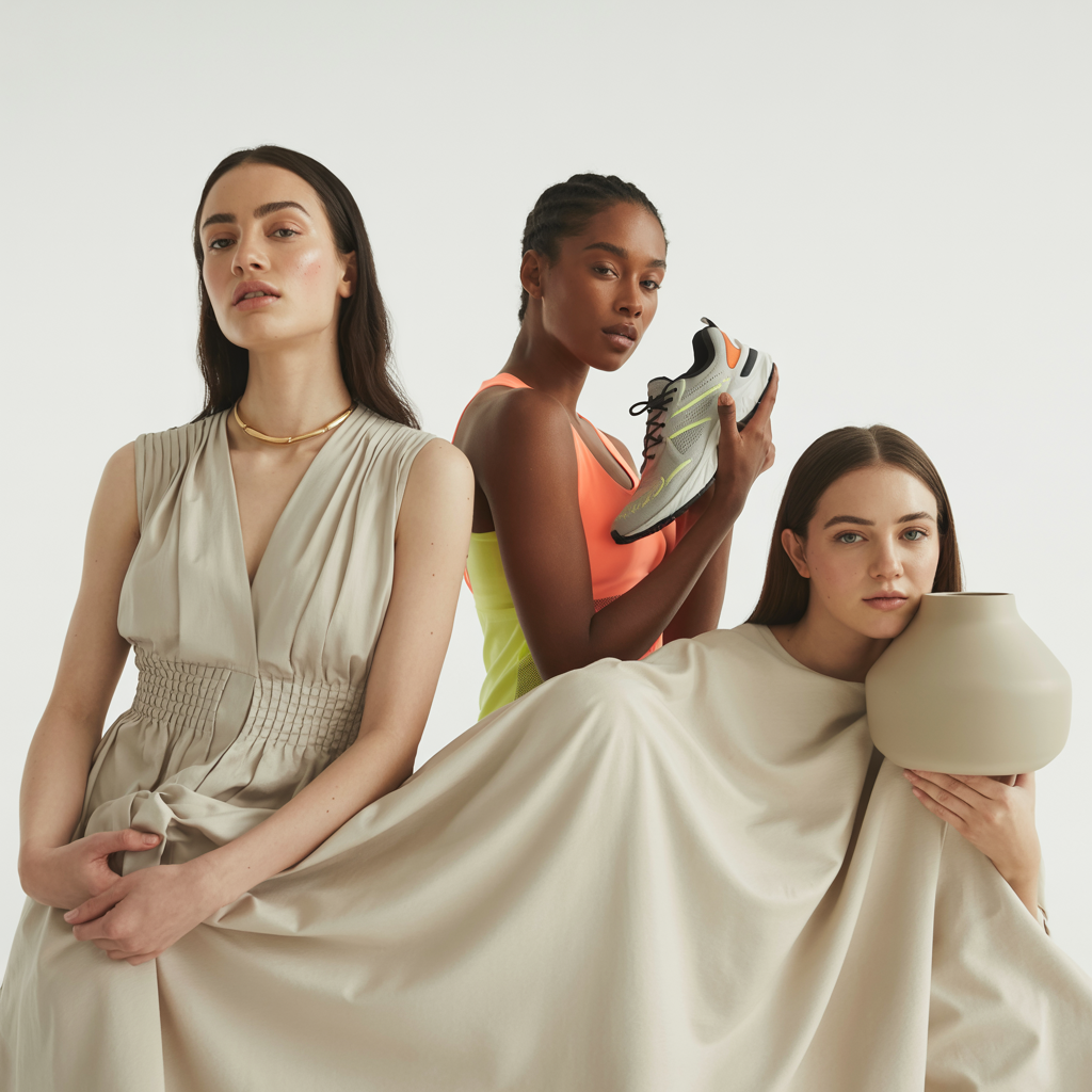 Trois univers qui s’unissent pour créer un style de vie moderne, inspirant et raffiné — des robes élégantes, une énergie sportive et une touche design pour votre intérieur.