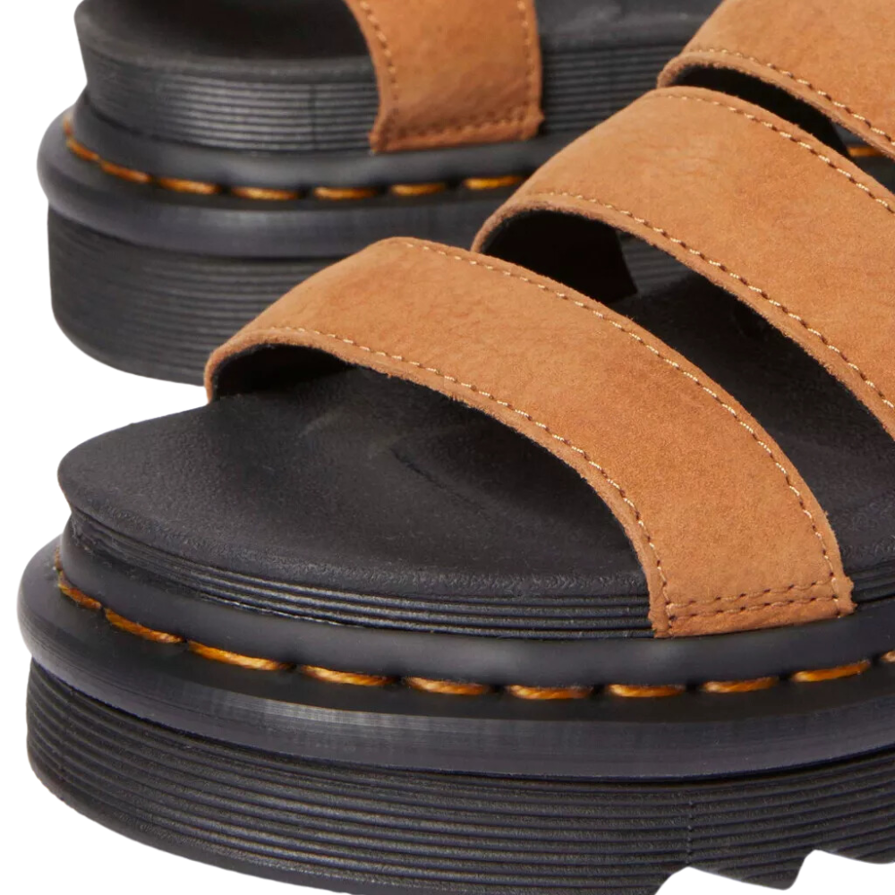 Ces sandales sont non seulement élégantes, mais elles sont également conçues pour durer. La semelle crantée est sécurisée par la célèbre couture jaune de Dr Martens, garantissant une robustesse à toute épreuve.