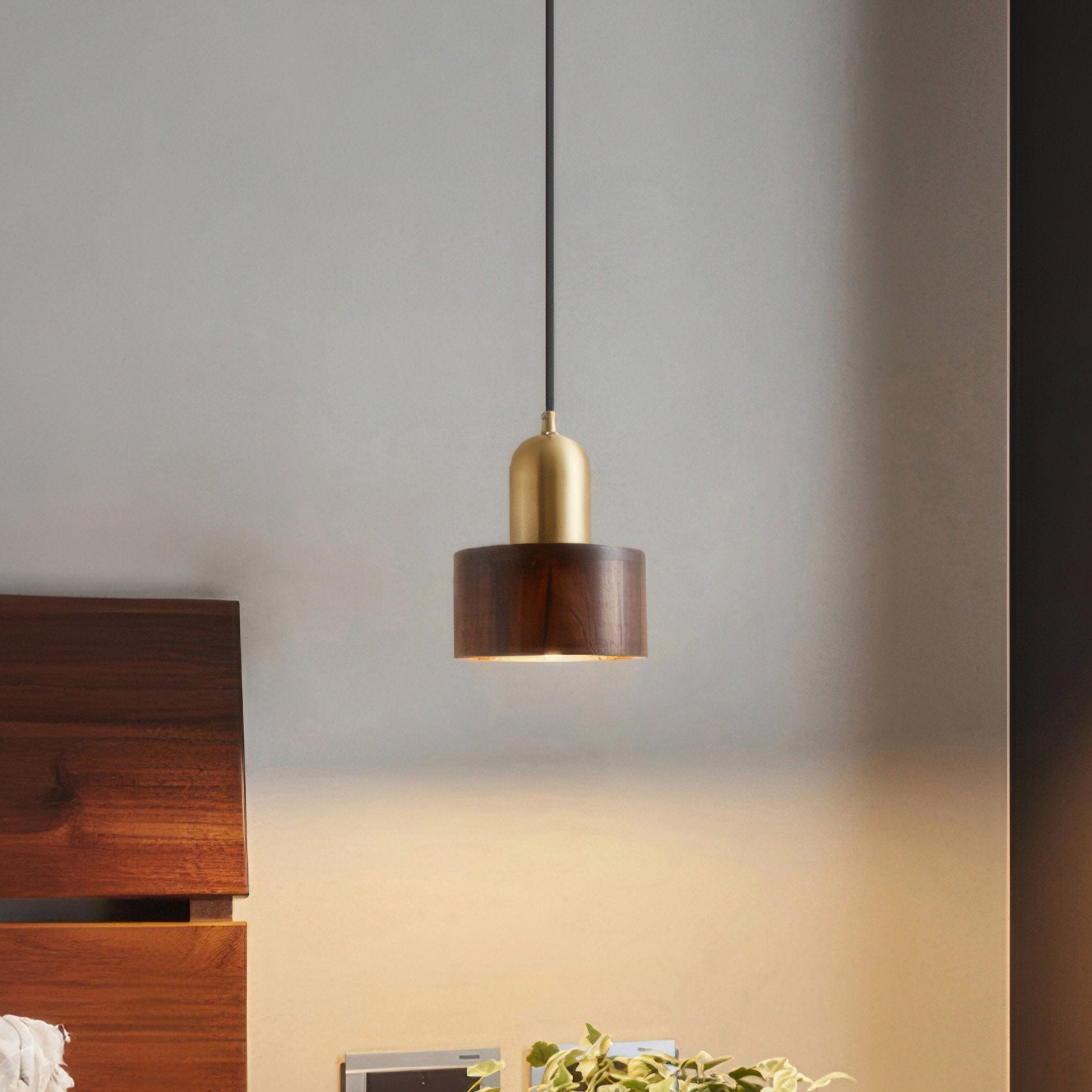 Lampe Suspendue Cylindrique – Fusion Élégante de Laiton et de Bois pour Intérieurs Contemporains et Chaleureux